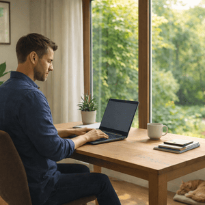 De grootste bijdrage leveren we met ons thuiswerken-tenzij-principe. Onze medewerkers werken in principe vanuit huis, tenzij fysieke aanwezigheid duidelijke meerwaarde heeft. Dit beperkt het aantal dagelijkse vervoersbewegingen drastisch en zorgt voor een directe en blijvende reductie van CO₂-uitstoot.